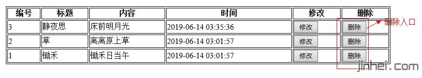 php获取数据库删除新闻内容案例附代码 步骤:1、在list.php页面点击删除按钮,跳转到del.php页面,传递删除的id2、在del.php页 ...