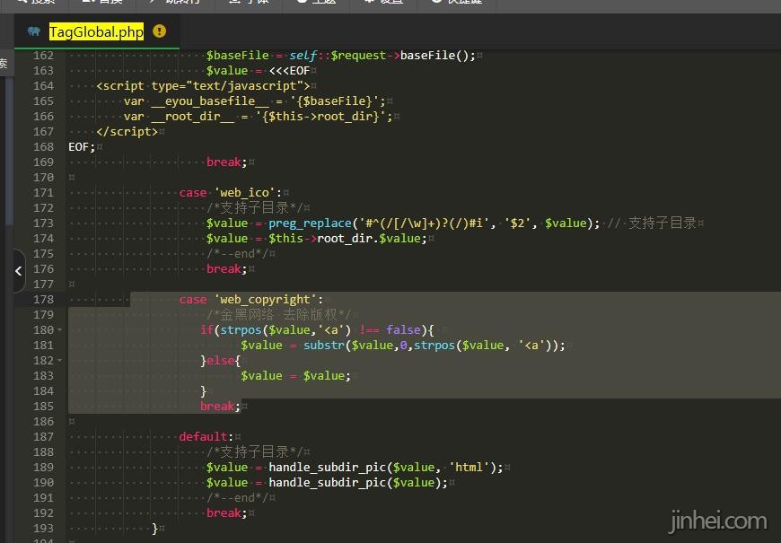 易优eyoucms删除去掉版权Powered by EyouCms方法教程,下面金黑网络教大家如何注释